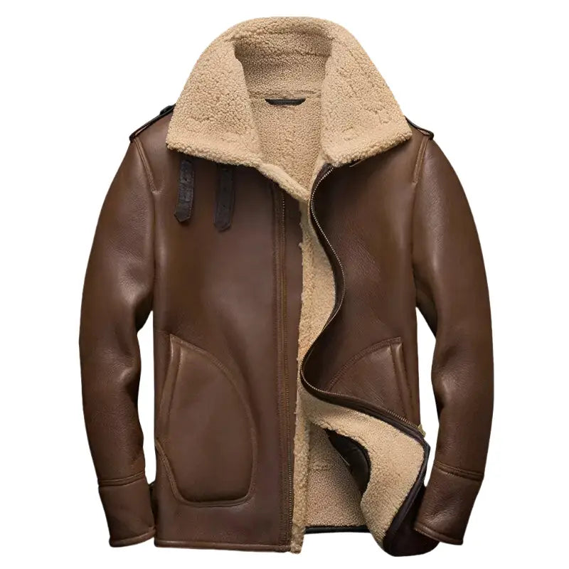 Mens Brown Shearling Pilot Leather Jacket